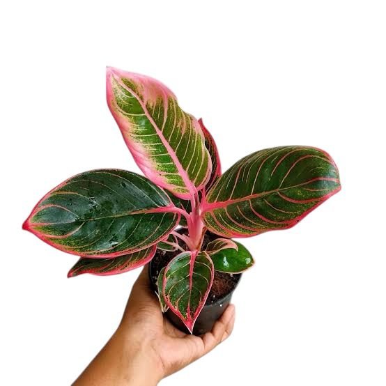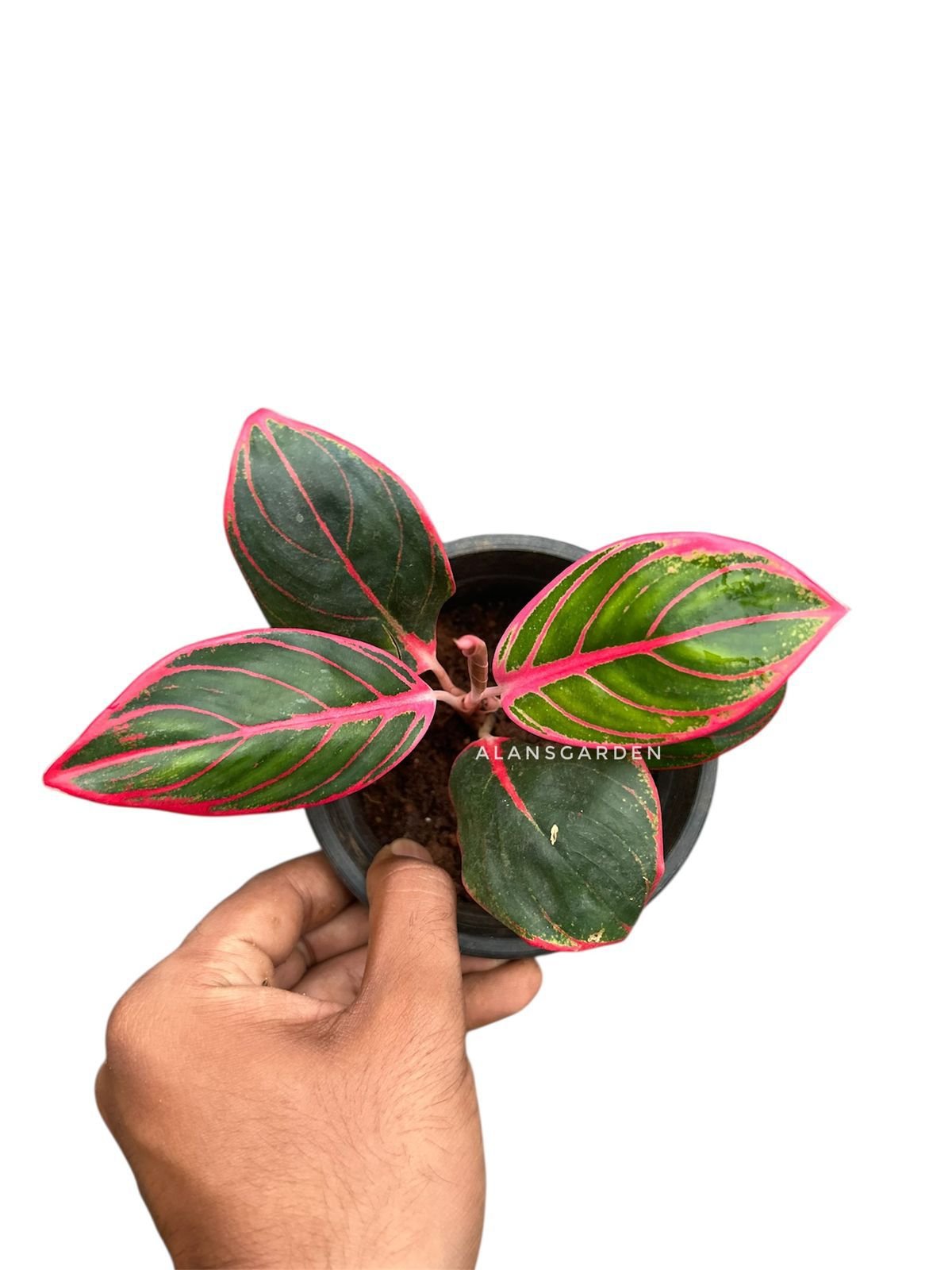 Aglaonema Khanza is a stunning ornamental indoor plant known for its vibrant foliage and striking colour patterns. The leaves feature a beautiful mix of soft green, creamy white, and pinkish-red variegation, giving the plant a lively and attractive appearance. Each leaf has a smooth texture, pointed edges, and bold veins that enhance the plant’s overall charm.