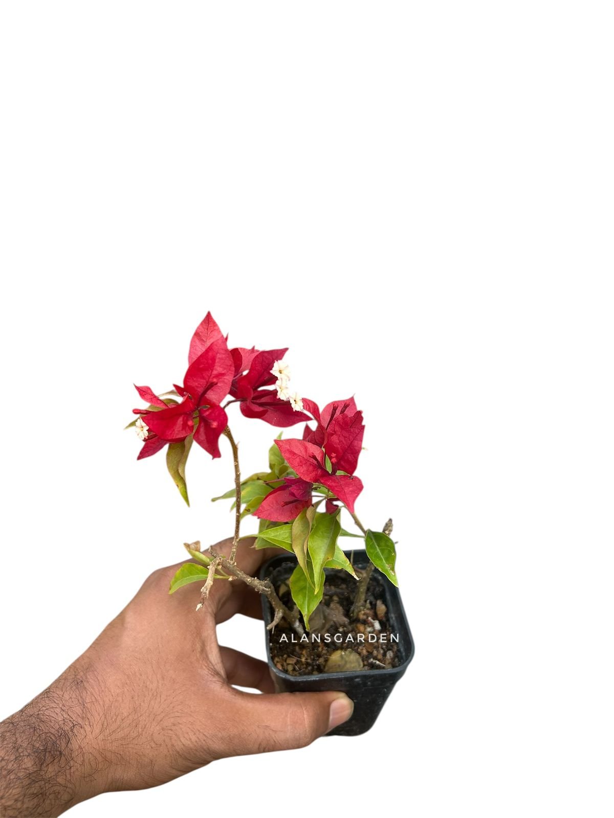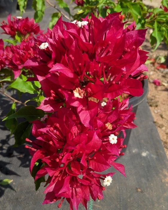 Bougainvillea Ruby Red is a vigorous, evergreen climber known for its deep ruby-red bracts that surround tiny white flowers. The intense color stands out beautifully against its fresh green foliage, making it a favorite for walls, fences, arches, and large pots. With proper sunlight and light stress, it blooms profusely almost year-round in warm climates.