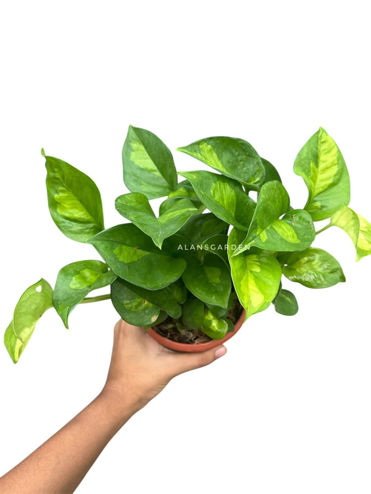 Global Green Pothos is a beautiful cultivar of Epipremnum aureum with deep green leaves marbled with lighter green patches. It is hardy, fast-growing, and excellent for homes, offices, hanging baskets, or climbing poles.